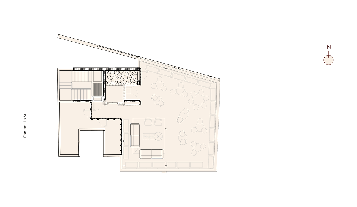 Private terraces on the 6th and 7th floors, which expand the workspace and transform it into a versatile environment with natural light, open air and views of the city.