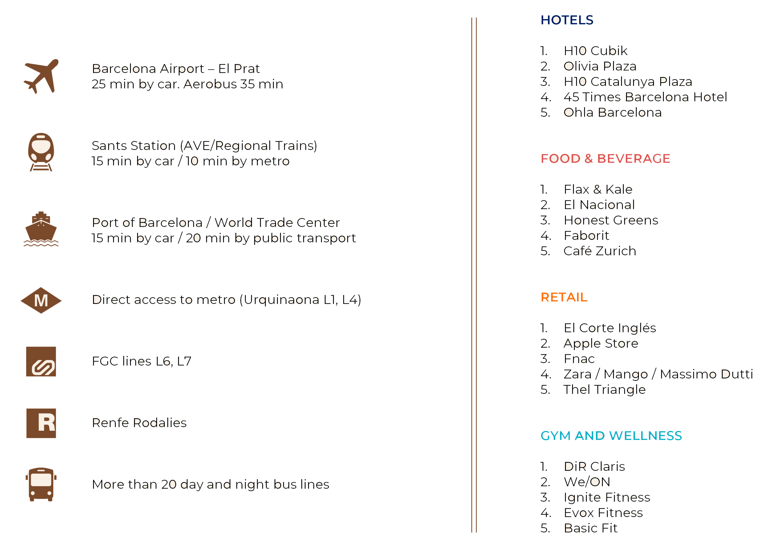 The location of NUX Barcelona allows access on foot, by public transport or by private vehicle to any key point in the city: